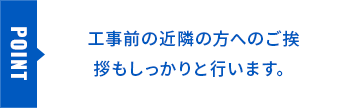 大手業者のようにスタッフが複数名関わるのではなく、一人で完結させるので、工事のクオリティが常に安定。